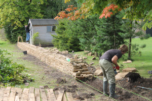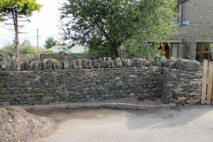 As time served dry stone wallers, we have literally built miles of dry stone wall. Dry stone wall is built without mortar and uses an intricate method of construction interlocking and overlapping stones and using smaller stones to fill in gaps. It doesn’t require a concrete foundation and has many environmental and drainage benefits. We are used to working with many different types of sandstone and limestone and can built free standing walls as well as retaining walls. Dry stone walls are incredibly versatile, they can be used to create many features such as seating areas and raised beds, it can be curved for a decorative element and there are many traditional regional variations. As well as building anew using quarried stone or reclaimed stone, we can price to repair or rebuild dilapidated or collapsed walls.