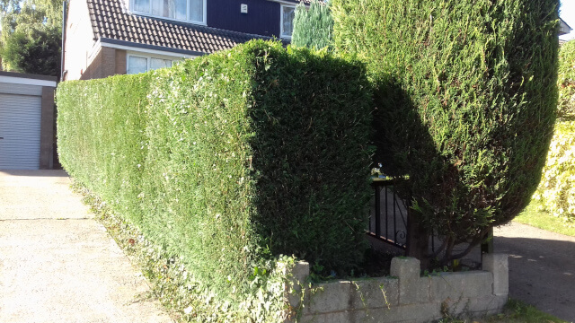 Robinlandscapes can offer a trimming service throughout the year to cut back the annual growth of hedges. We use powerful petrol equipment to efficiently trim growth and ladders to gain access to taller hedges. However, it may be you want a reduction of the height of a hedge which is possible with many species and can make the hedge easier to manage in the future.